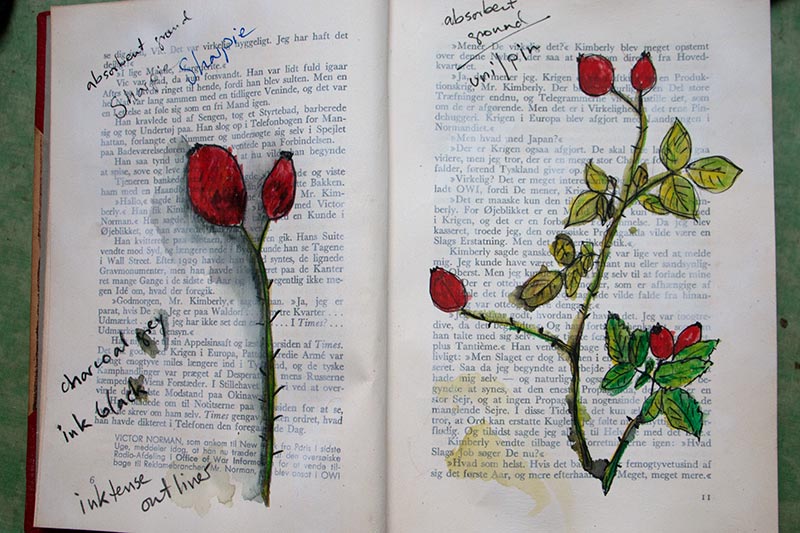 Perhaps I’m only interested in the idea of drawing, because what happens when I wander the garden with a pencil in hand, doing quickies of leaves and berries? I get bloody bored, that’s what happens. I’ll do all this some more, but it could be that I’m simply not a “linear” type of person. Because I’d be much more entertained doing this with paint – except still life is definitely not my thing, or a very naturalistic style. So the latter could be it as well, because what do we do when we begin to learn drawing? Try to make it ACCURATE most likely. Just like my deteriorating handwriting, our style becomes looser as it ages. (as do so many other things…)