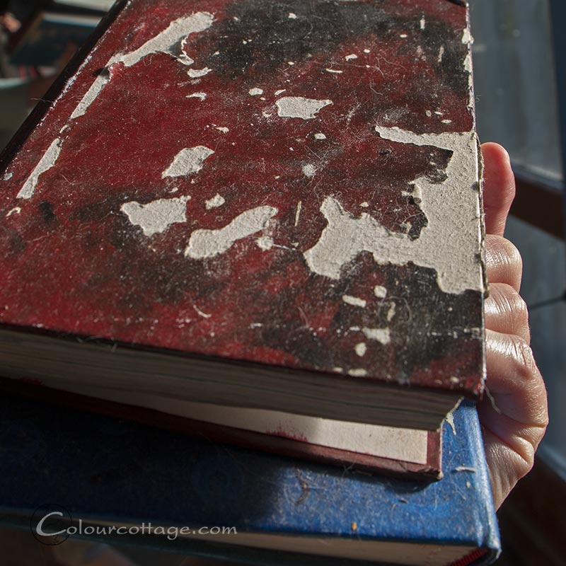 I’ve salvaged some pages I liked, repaired 2 covers, and thrown out the other 3 books that didn’t have proper signatures – the ones that are single pages glued to the spine are the ones most likely to not lie flat.
