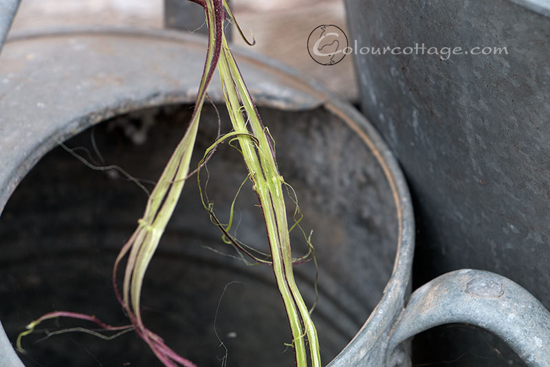 Stripping the dried, retted stems is hard on my old lady hands too in terms of strength, but I can do it one stem at a time if I so please! So the new bundle is in the tub too – this time however I won’t put water in it, I’ll just leave them to the elements. After all, if I can get totally mouldy tansy hanging to dry inside from the stable ceiling, a few weeks outside this late in the year ought to get some microbes brewing or whatever it is that will break down nettles?